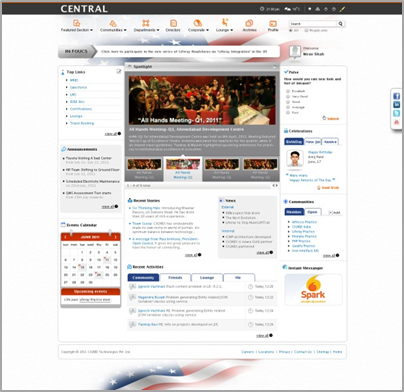 Changing themes in line with festivals, holidays or upcoming events makes the intranet portal interesting. Optionally, themes can be user defined also. Users can also select theme from a set of pre-defined themes. On selection, sections of intranet will be customized as per the selected theme.